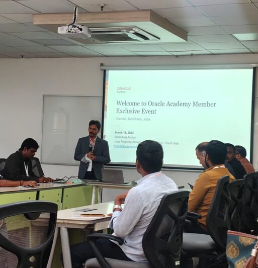 "Faculty Participation at Oracle APEX Utsav 2025 IIT Madras Research Park, Chennai. Organized by INOAUG and Oracle Academy, the event focused on promoting innovation in low-code application development, artificial intelligence (AI), and cloud solutions."